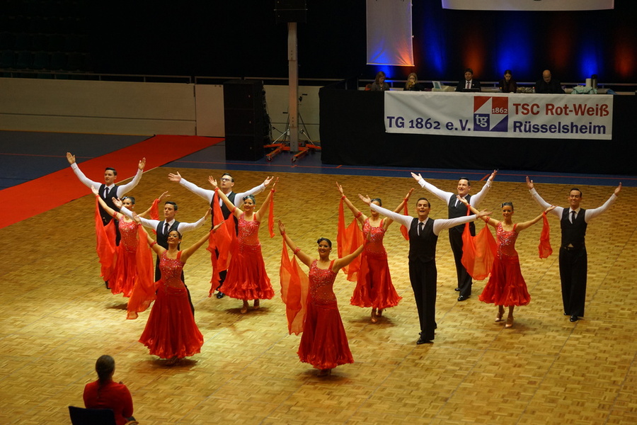 Dank einer kurzen Anfahrt erreichten die Tänzerinnen und Tänzer der B-Teams mit ihrer Trainerin Julia Hofmann die Großsporthalle in Rüsselsheim genau nach Zeitplan. Begleitet wurde das Team außerdem von einigen Mitgliedern des A-Teams, die ihre Mannschaft im Wettkampf unterstützen und anfeuern wollten. Da dieses Turnier für einen Großteil der Tänzerinnen und Tänzer das erste Turnier darstellte, war die Nervosität im Team vor dem Auftritt sehr hoch. Trotz der großen Anspannung lieferte das Team einen soliden ersten Durchgang ab und qualifizierte sich hiermit für das kleine Finale.