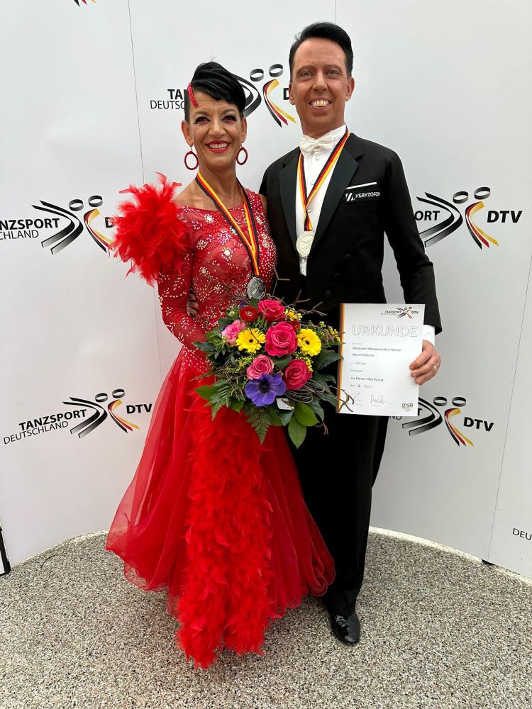Auch der Sonntag stand in der Kamener Stadthalle voll im Zeichen des Tanzsports. Bei der Deutschen Meisterschaft der Masters III in der Kombination gingen Rolf und Iris Pernat vom TSC Saltatio Neustadt als einzige TRP Vertreter an den Start. Unter 25 Paaren setzten die beiden sich erwartungsgemäß bis ins Finale durch und mussten sich in der Endrunde nur denkbar knapp der Konkurrenz aus Berlin geschlagen geben. Mit fünf gewonnenen Lateintänzen und dritten und vierten Plätzen in den Standardtänzen wurden sie Vize Deutschemeister!