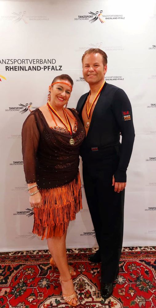 Weiter ging es mit dem Turnier der Senioren I A, welches mit vier Paaren ganz "normal" ausgetanzt werden konnte. Drei Paare konnten Bestnoten auf ihrem Konto verbuchen und sorgten für ein spannendes Turnier. In der Samba noch Zweite konnten Lukas Kurkowski und Angelina Buhr vom 1.TGC Redoute Koblenz und Neuwied im Cha-Cha aufholen und alle weiteren Tänze gewinnen. Damit verwiesen sie nicht nur die Konkurrenz auf den zweiten Platz, sie durften sich neben dem Sieg auch über den Aufstieg in die S-Klasse freuen. Mark und Sina Turpin vom TC Rot-Weiss Casino Mainz folgten auf dem zweiten Platz und konnten zehn Bestnoten auf ihrem Konto verbuchen. Die Bronzemedaille ging an Marc Weber und Sonja Paschek vom TSC Landau, die vier dritte und einen zweiten Platz im Jive belegten.