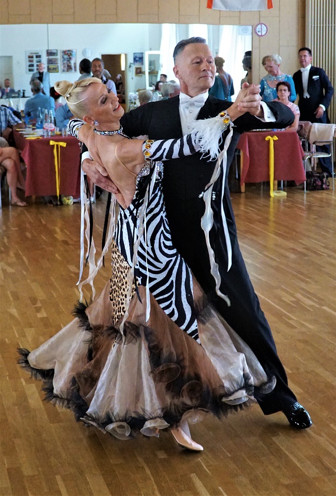 Der zweite Tag des Landesmeisterschaftswochenendes beim TSC Neuwied bat die Paare der Senioren II, III und IV Standard bei sommerlich heißen Temperaturen auf das Parkett. Trotz des schönen Wetters fanden zahlreiche Zuschauer*innen und Fans den Weg nach Neuwied, um ihre Favoriten anzufeuern. Der letzte Quickstep der Senioren II S sorgte sogar für Standing Ovations und tosenden Applaus. Um allen Paaren die Möglichkeit des Starts zu geben, fand das Turnierbüro-Team des TRP einige Kombinationsmöglichkeiten. Lediglich das Turnier der Senioren II C Standard musste leider kurzfristig am Turniertag abgesagt werden. Turnierleiter Thomas Rhinow führte in gewohnt kurzweiliger Manier durch das Turnier und verschaffte den Paaren durch die ein oder andere amüsante Anekdote, die bei diesen Temperaturen dringend benötigte Pause zum Durchatmen.