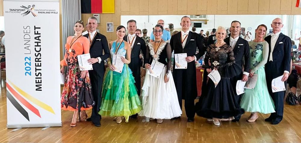Für eine tolle Stimmung sorgten die Paare des letzten Turniers, der Senioren II S Klasse, die alle die Städte Koblenz oder Neuwied im Clubnamen tragen und sich auf insgesamt drei Vereine verteilen. Angefeuert durch die Zuschauer zeigten Eckehard und Anne Kahl vom 1.TGC Redoute Koblenz und Neuwied energetisches und dynamisches Standardtanzen, was mit dem ersten Platz in allen fünf Tänzen und dem Landesmeistertitel belohnt wurde. Spannend wurde es um Platz zwei, welchen mit 1,5 Platzziffer Vorsprung Mario Thamm und Miriam Gottschalk vom Tanz-und Sportzentrum Mittelrhein Koblenz belegten. Ralf und Eva Pfitzer vom 1.TGC Redoute Koblenz und Neuwied folgten ihnen auf dem dritten Platz. Wiederum nur eine Platzziffer dahinter lagen Thomas Broszey und Claudia Bleidt vom TSC Neuwied, die im Quickstep sogar auf dem zweiten Platz gesehen wurden. Platz fünf ging an Jürgen Diegel und Andrea Frey vom 1.TGC Redoute Koblenz und Neuwied.