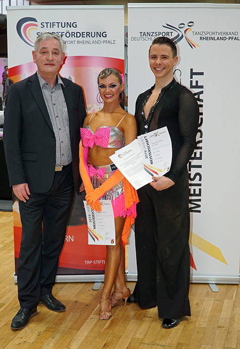 In den zurückliegenden Wochen wurden bereits acht erfolgreiche und leistungsstarke Turnierpaare sowie talentierte Nachwuchspaare des Tanzsportverbandes Rheinland-Pfalz – unter anderem aufgrund ihrer tanzsportlichen Erfolge in 2018 sowie zur Förderung ihrer tanzsportlichen Weiterentwicklung – im Rahmen von vereinsinternen Weihnachtsfeiern beim TSC Saltatio Neustadt und dem TanzZentrum Ludwigshafen sowie bei Neujahrsempfängen beim TSC Landau und dem TSC Crucenia Bad Kreuznach von Stiftungsvorstandsmitgliedern mit Einzelförderpreisen der Stiftung ausgezeichnet. Zwei weitere Lateinpaare haben sich ebenfalls für eine Einzelförderung empfohlen, allerdings konnten die beiden noch ausstehenden Förderpreisübergaben in Koblenz und Grünstadt bis dato noch nicht terminiert werden. Spontan entschied der Stiftungsvorstandsvorsitzende, die beiden Auszeichnungen im Rahmen des Landesmeisterschaftswochenendes in den lateinamerikanischen Tänzen in Haßloch vorzunehmen, da beide Paare an der Landesmeisterschaft ihrer jeweiligen Alters- und Startklasse teilnahmen.